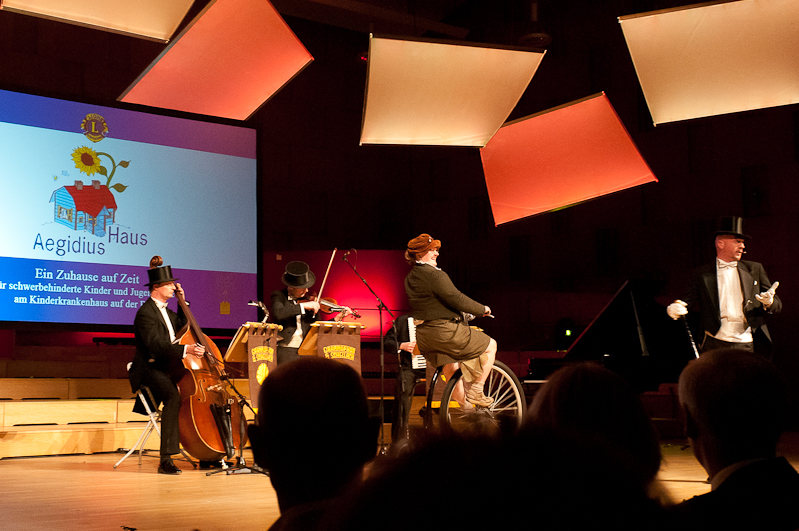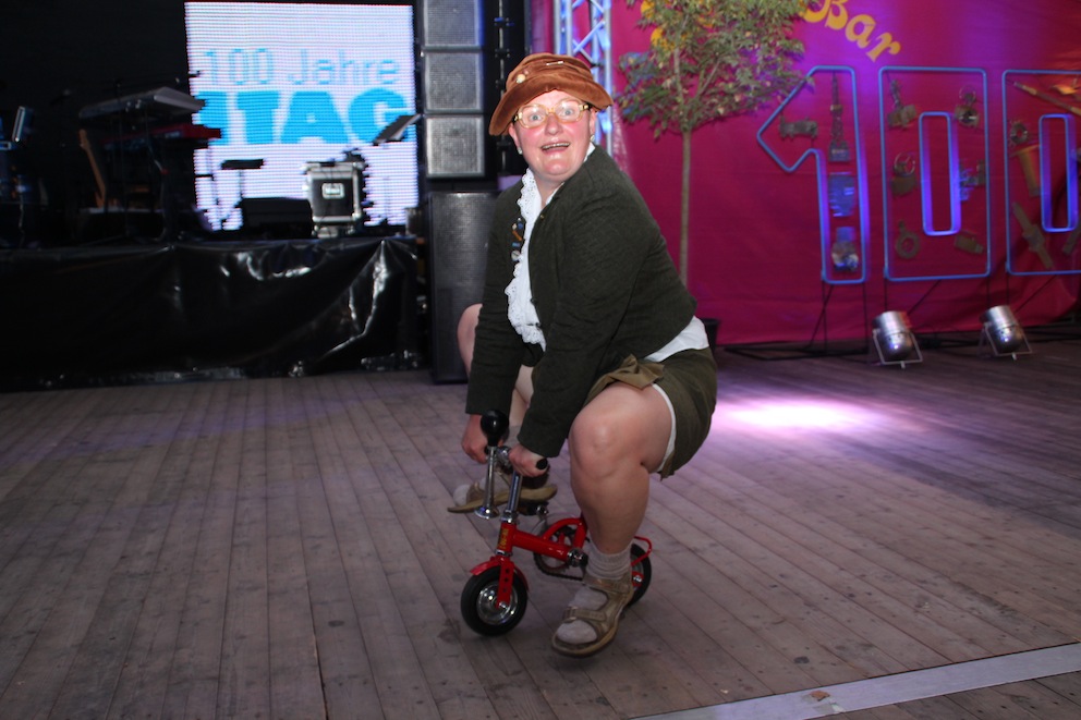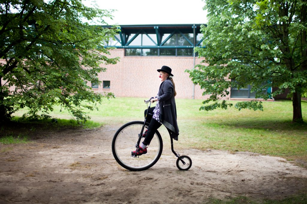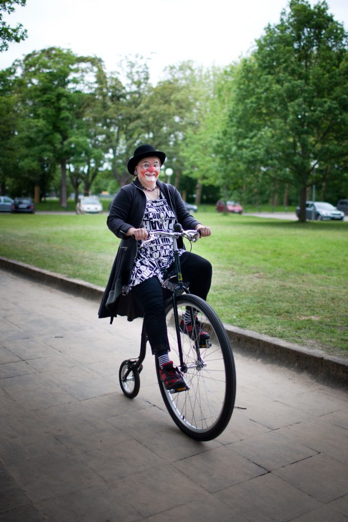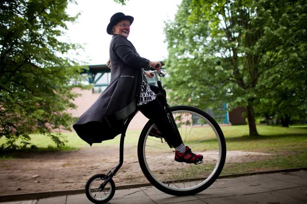 Akrobatische Darbietungen sowohl auf dem Minirad als auch auf dem Hochrad.